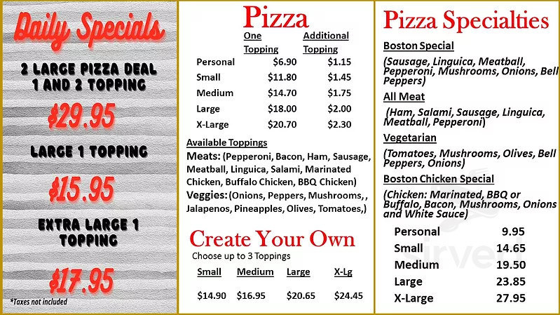 Boston House Of Pizza Menu In Fresno California Usa